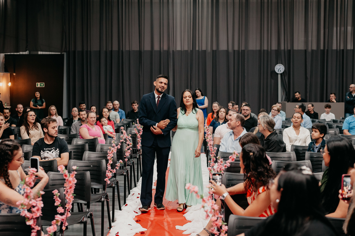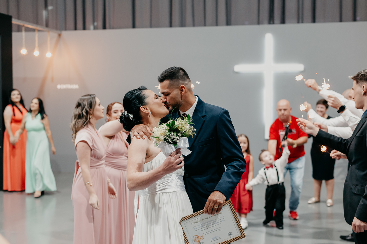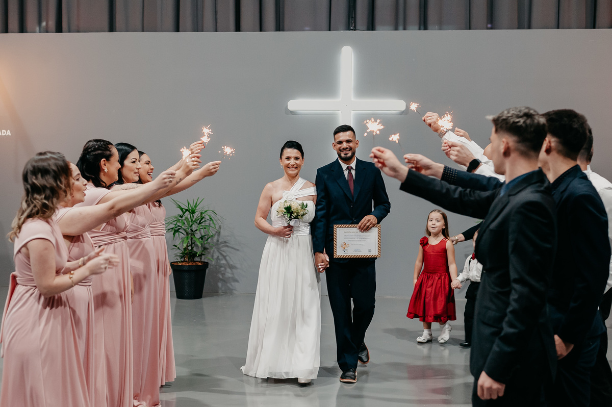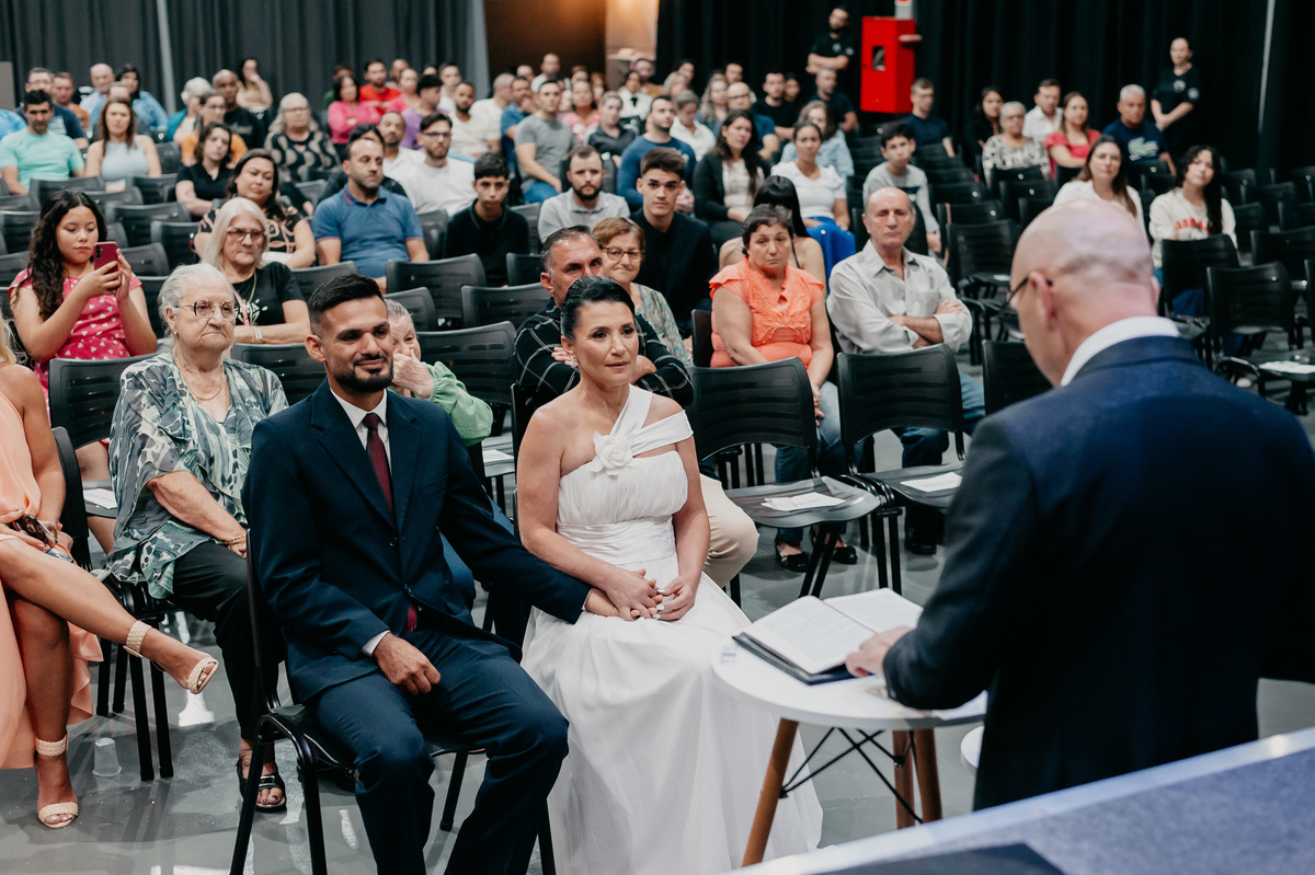 A cerimônia aconteceu no Ministério Semear de Marau, um culto maravilhoso com uma palavra linda ministrada pelo Pr Valdecir, com o qual o casal tem uma grande intimidade, deixando tudo ainda mais emocionante!