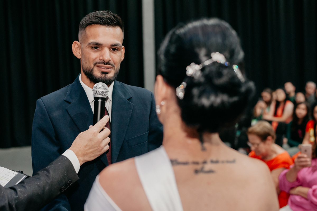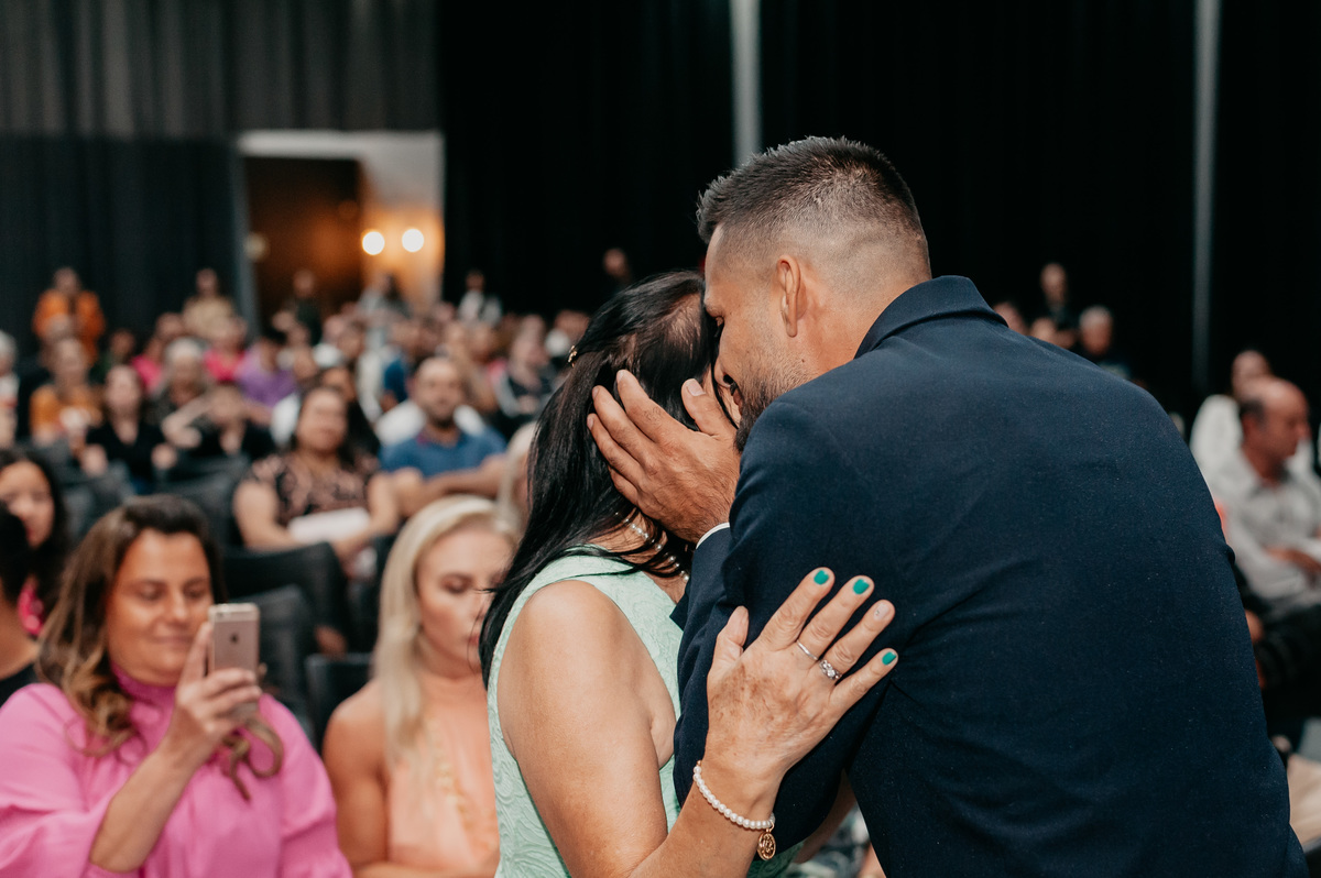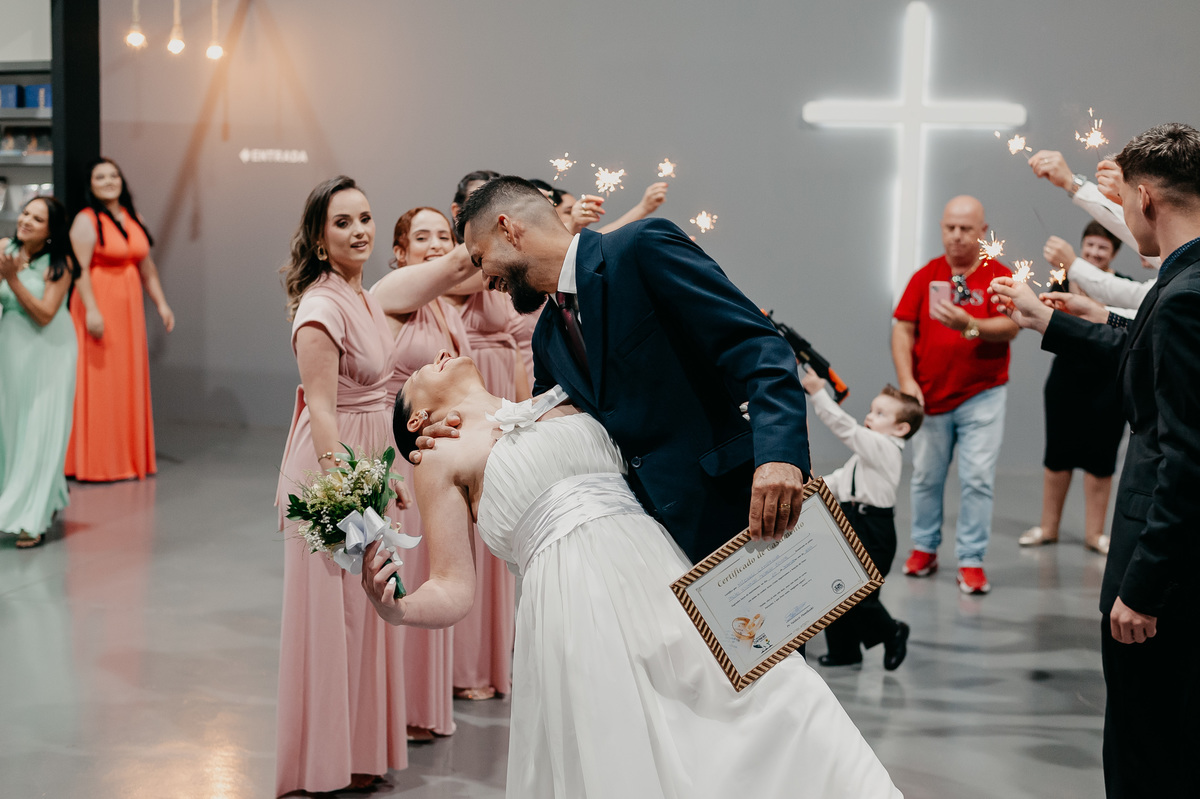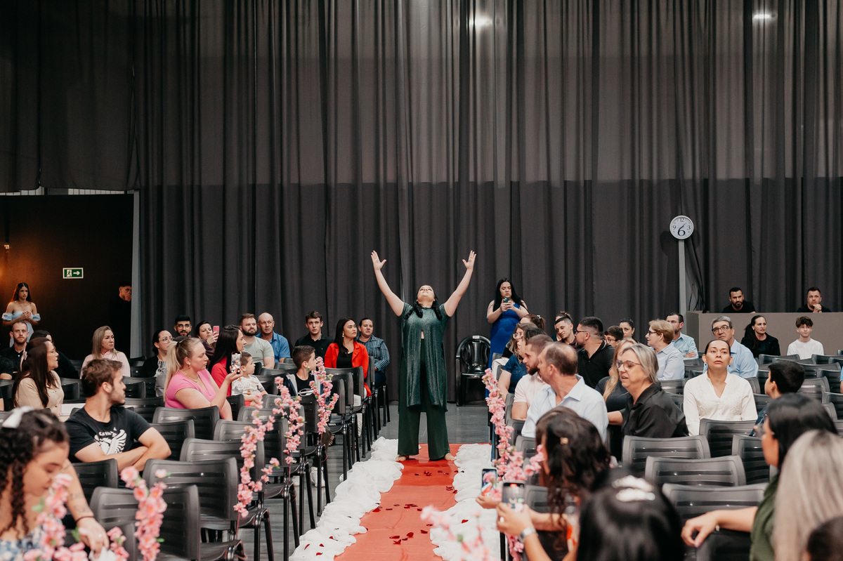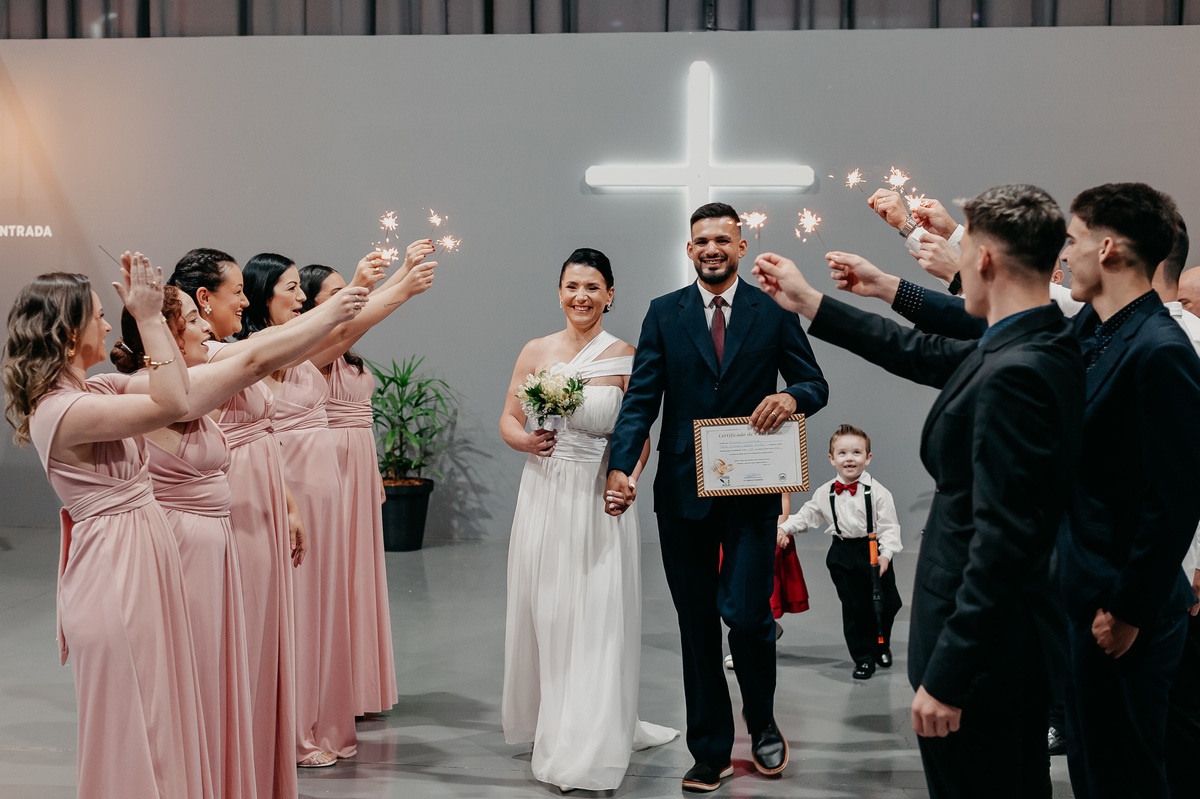 A cerimônia aconteceu no Ministério Semear de Marau, um culto maravilhoso com uma palavra linda ministrada pelo Pr Valdecir, com o qual o casal tem uma grande intimidade, deixando tudo ainda mais emocionante!